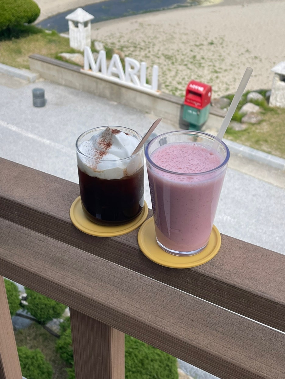 딸기바나나주스와 아이스 아인슈페너.